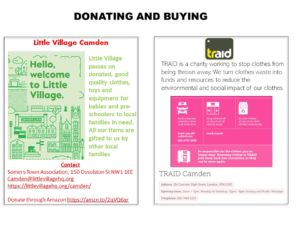 • Help TRAID to put  back into use the 123 million items of clothing that are sitting unworn in London\’s wardrobes; passing on clothes for someone else to use is something we can all do to make a difference.